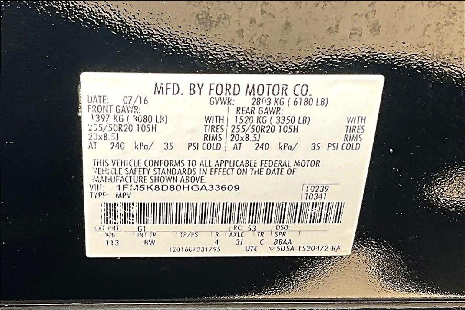 Side Impact Beams, Dual Stage Driver And Passenger Seat-Mounted Side Airbags, Tire Specific Low Tire Pressure Warning, Dual Stage Driver And Passenger Front Airbags, Safety Canopy System Curtain 1st, 2nd And 3rd Row Airbags, Airbag Occupancy Sensor, Passenger Knee Airbag, Mykey System -inc: Top Speed Limiter, Audio Volume Limiter, Early Low Fuel Warning, Programmable Sound Chimes and Beltminder w/Audio Mute, Back-Up Camera w/Washer