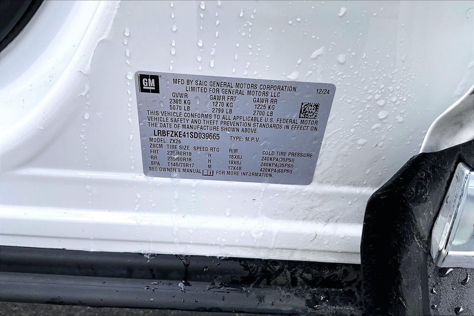 - Tires, P235/60R18 all-season