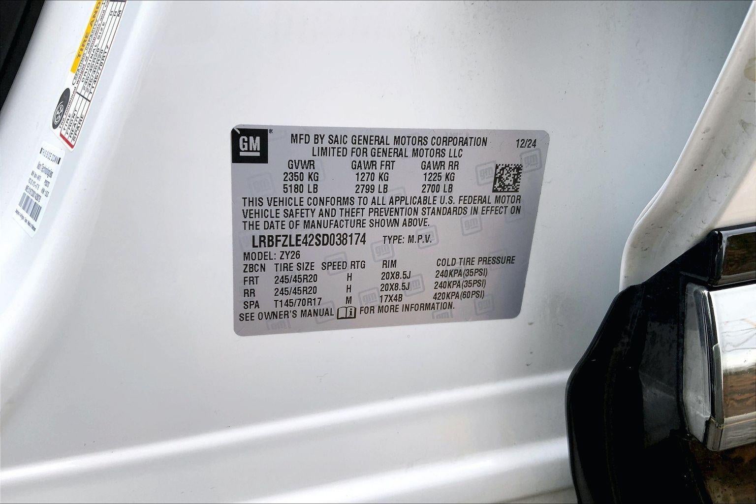 - Tires, P245/45R20 all-season