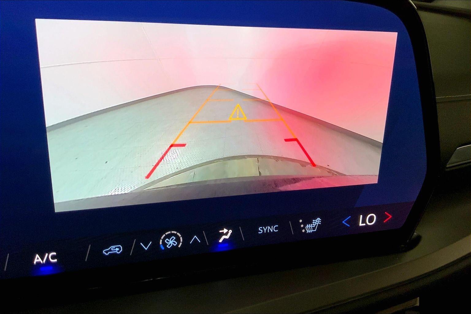 - The vehicle is equipped with a camera that displays an image of the area behind the vehicle on an interior display. The camera is equipped with its own washer.