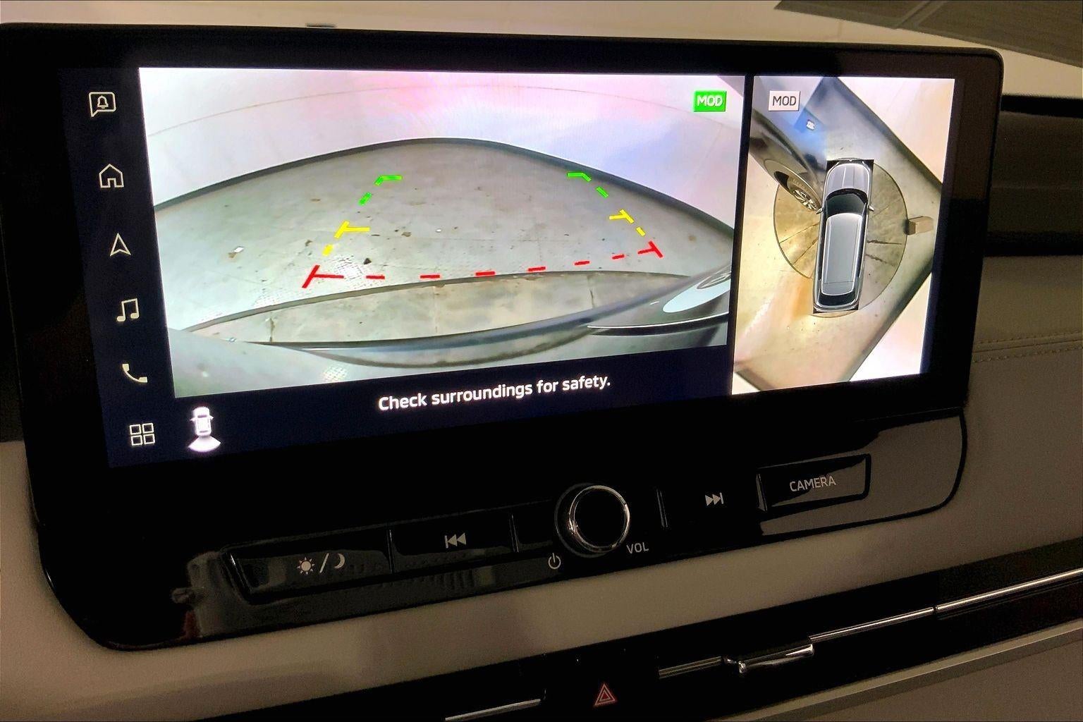 - The vehicle is equipped with a camera that displays an image of the area behind the vehicle on an interior display.