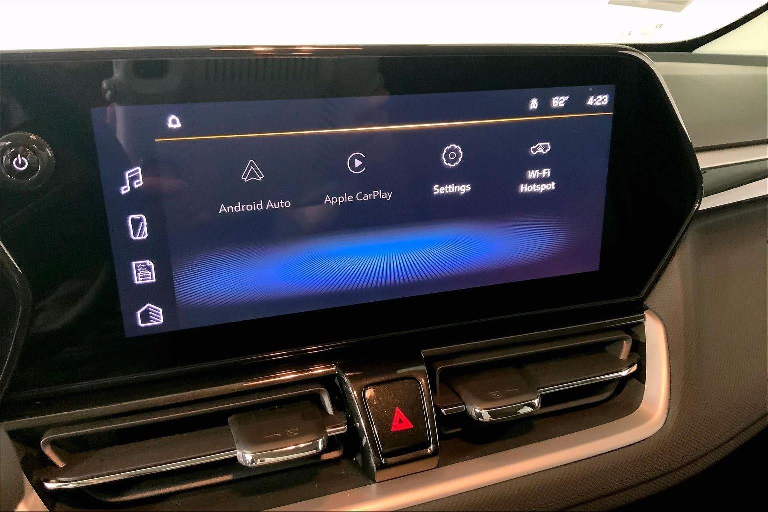 - Audio system, 11" diagonal HD color touchscreen, AM/FM stereo. Additional features for compatible phones include: Bluetooth® audio streaming for 2 active devices, voice command pass-through to phone, wireless Apple CarPlay and wireless Android Auto capable